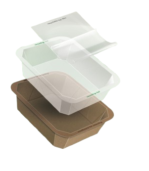 При производството на тези опаковки се използват възобновяеми суровини и дори рециклиран картон, без да се жертва качеството на храната. И най-доброто от всичко, е че тези тарелки са много лесни за рециклиране. Отлепващият се тънък вътрешен слой фолио може лесно да се отдели от картона, оставяйки възобновяем картон, който е подходящ на изискванията за рециклиране.
