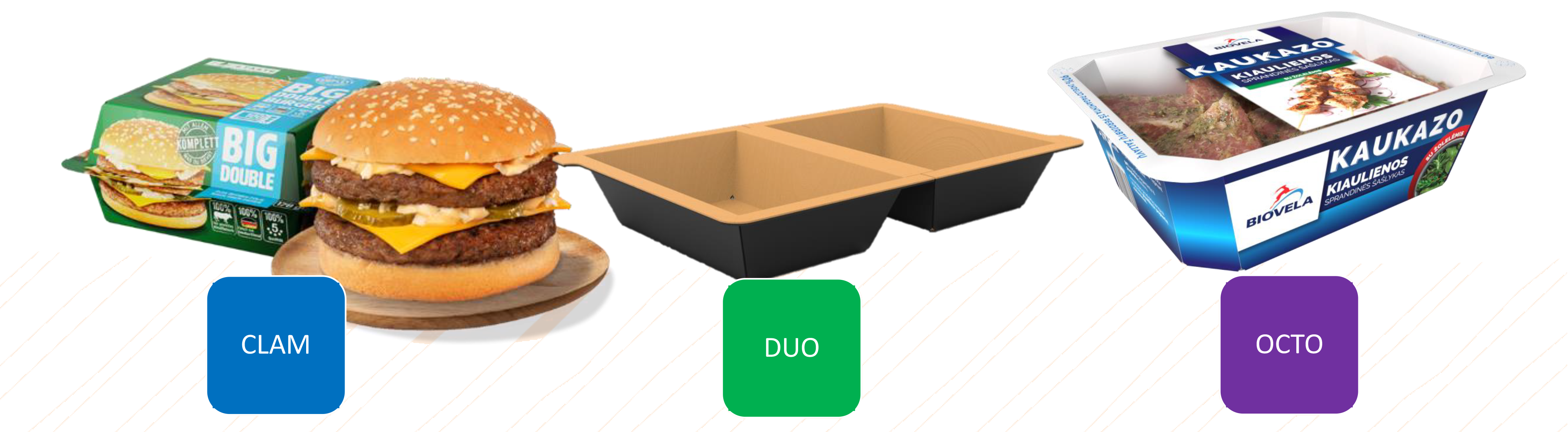 • Изработени от специален бял картон с HB liner основа върху cPET, което гарантира здравина и сигурност при високи температури.